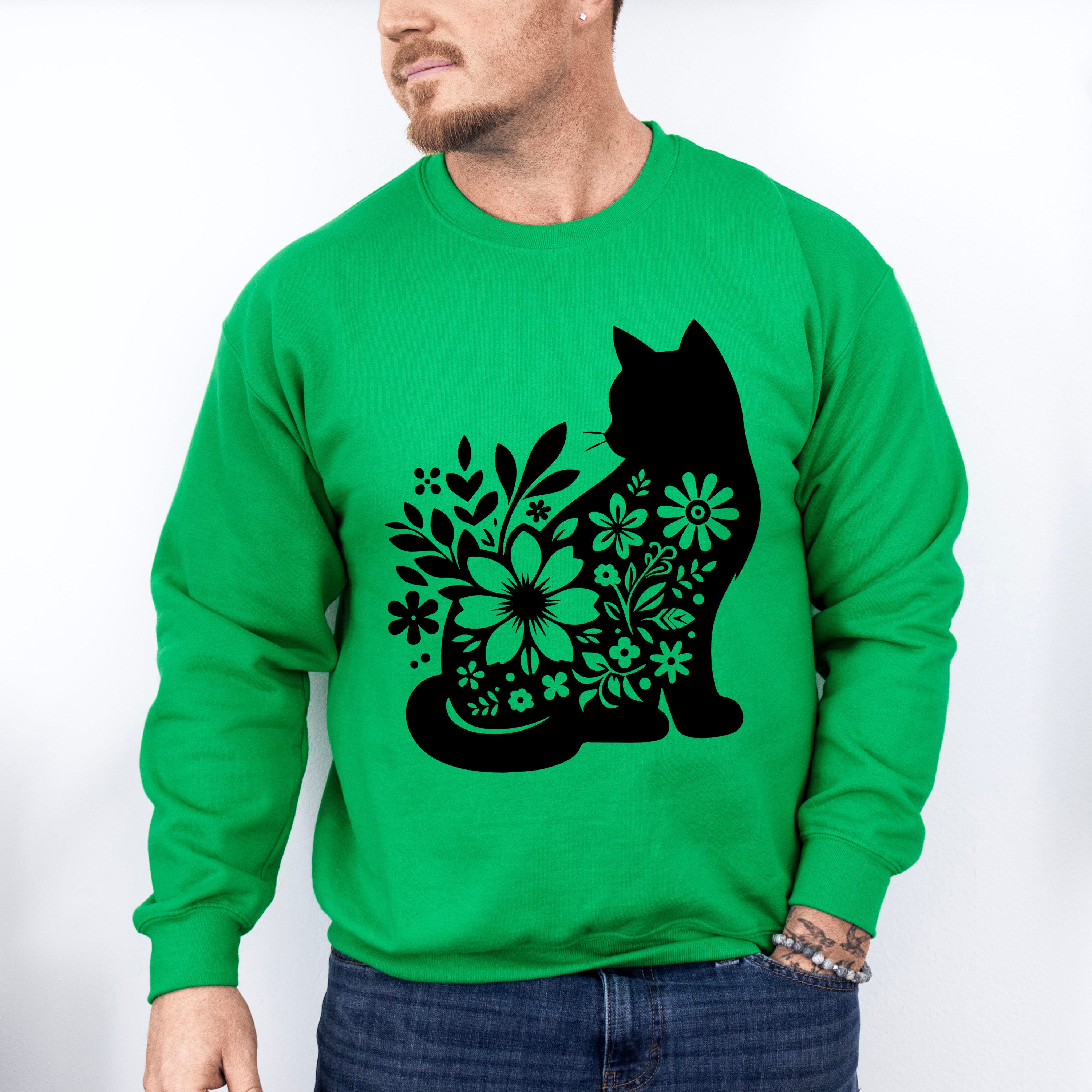 B&W Flower Cat - Cat Unisex Crewneck T-Shirt Sweatshirt Hoodie