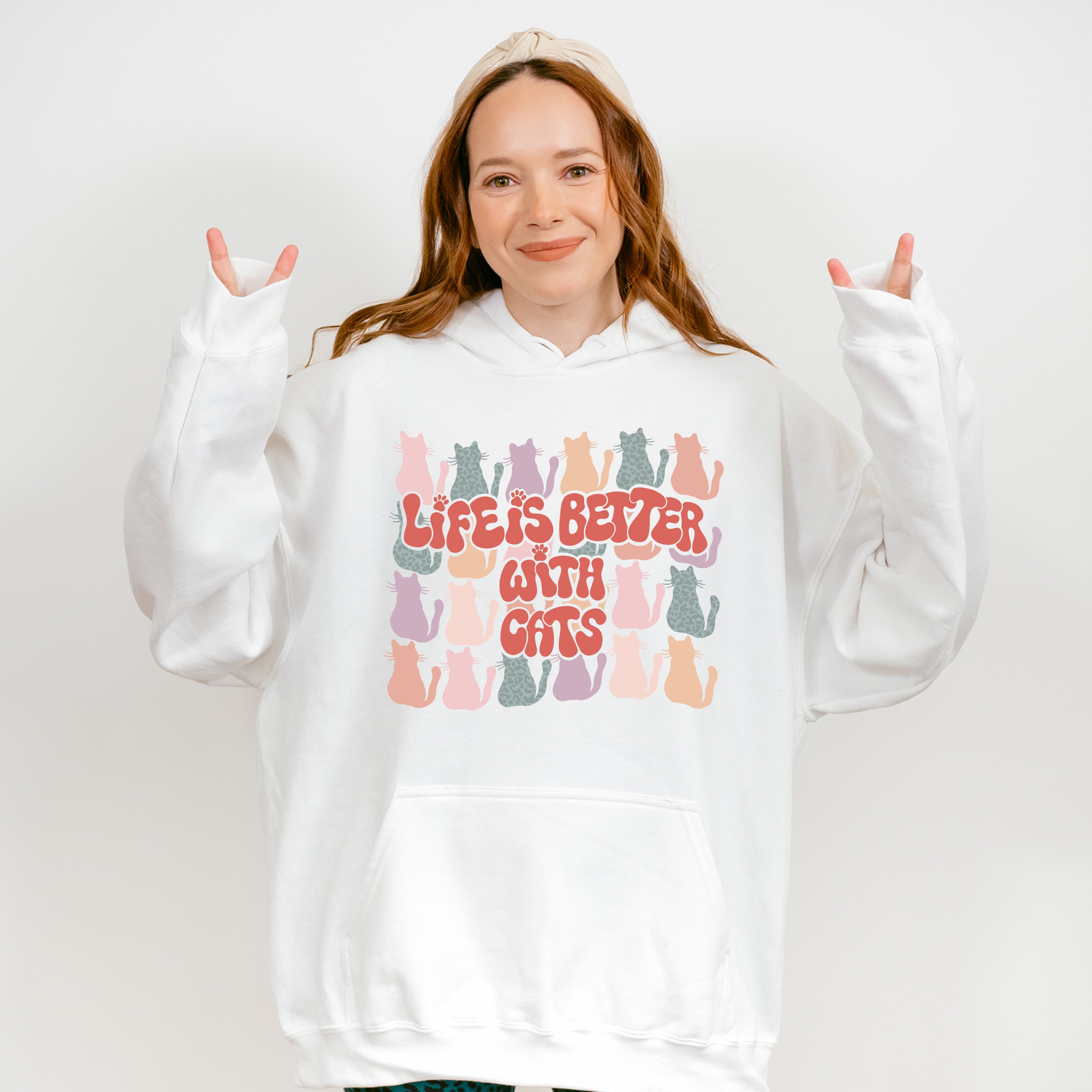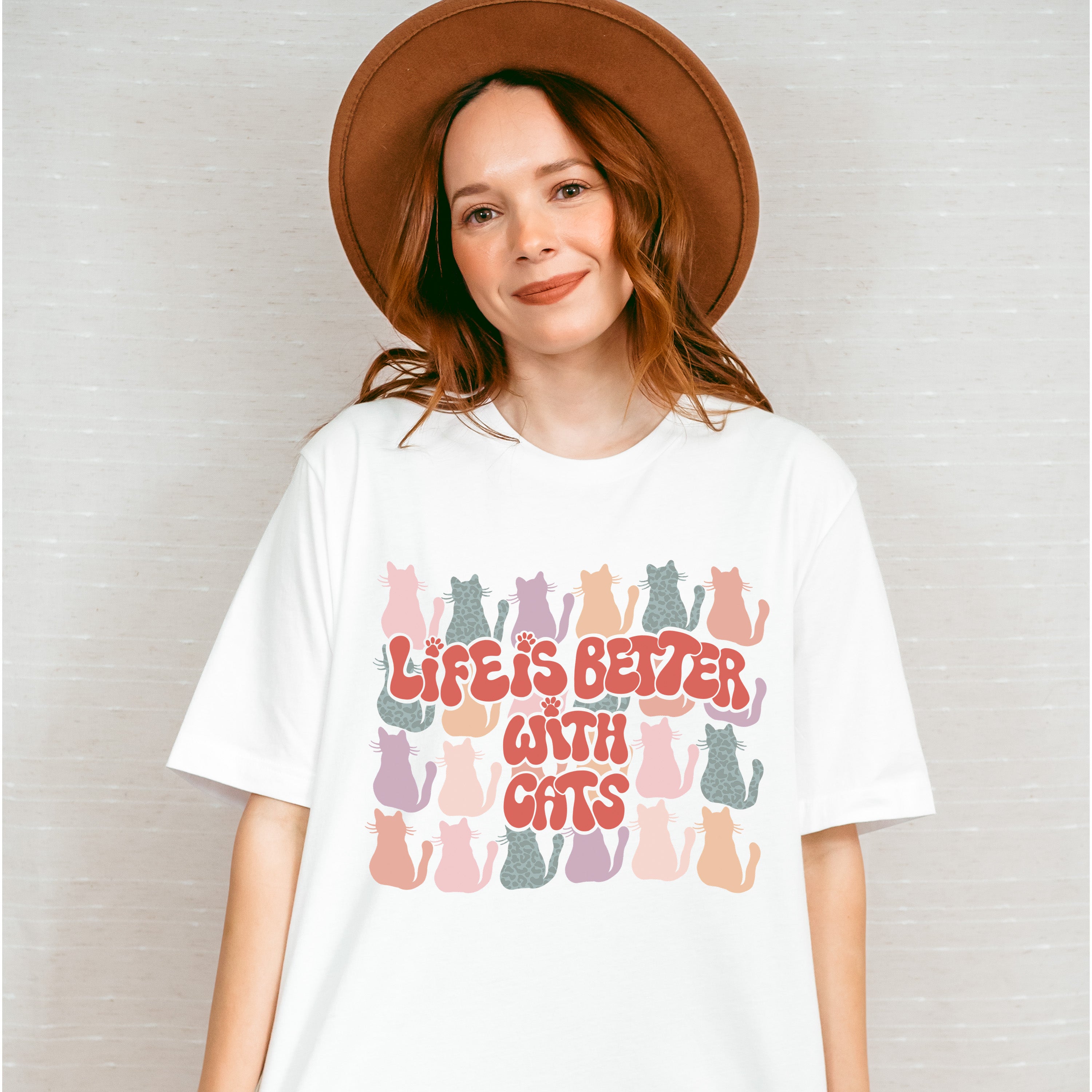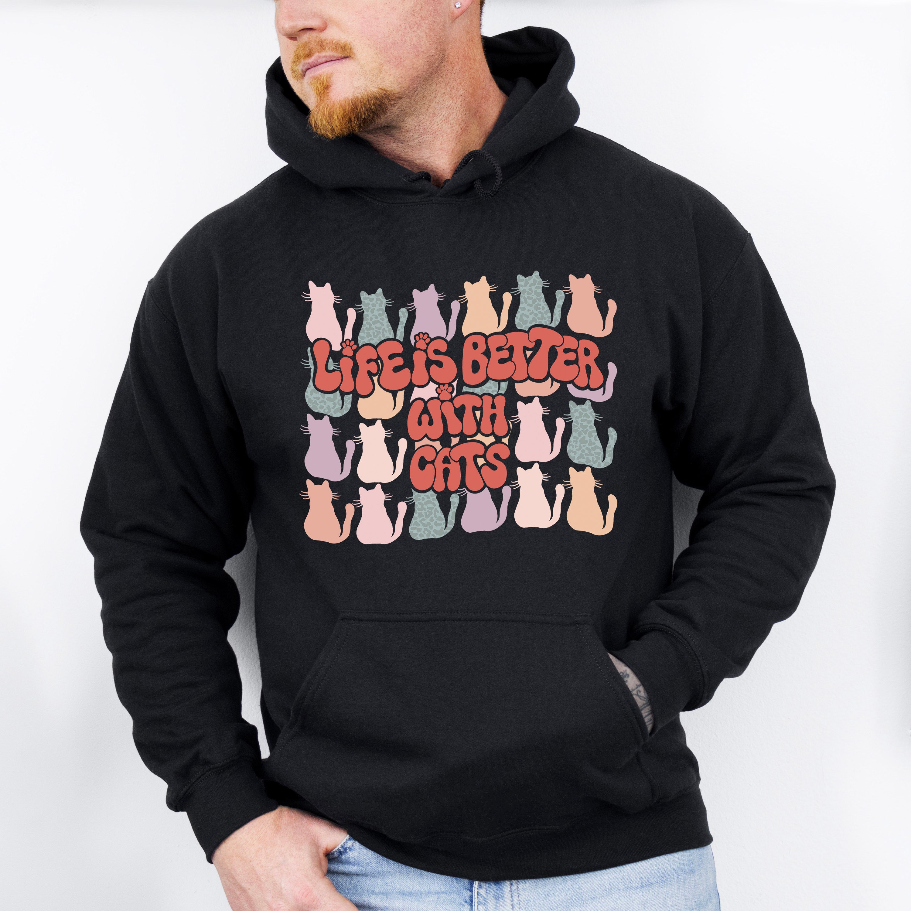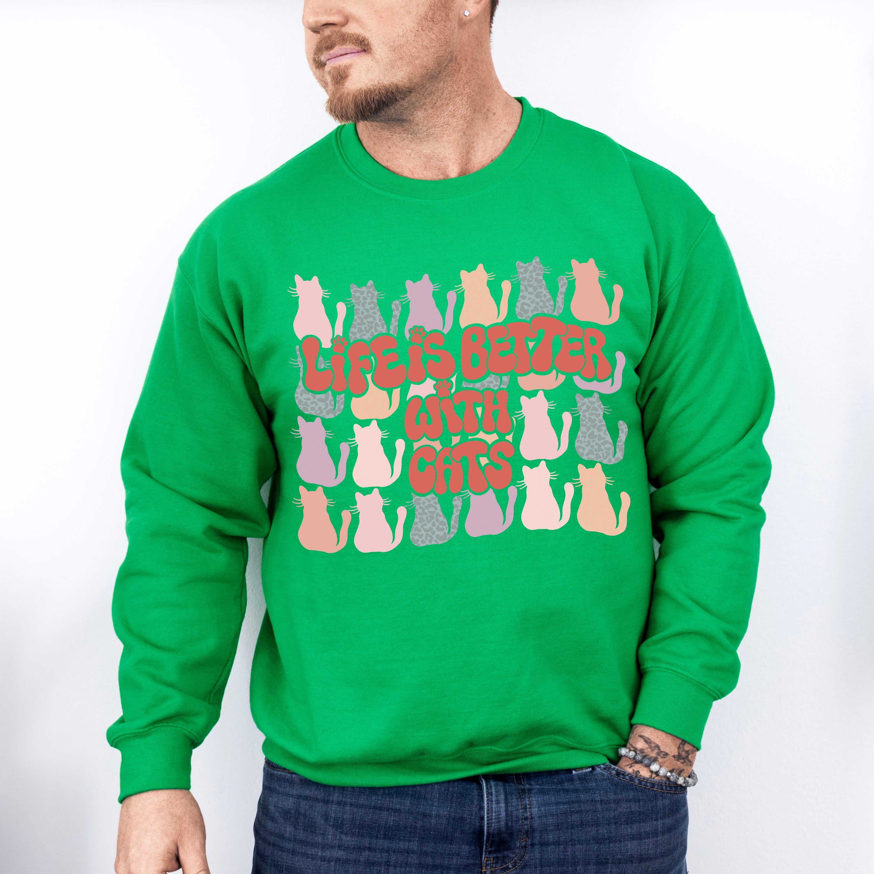 Life Is Better With Cats Colorful Design - Cat Unisex Crewneck T-Shirt Sweatshirt Hoodie
