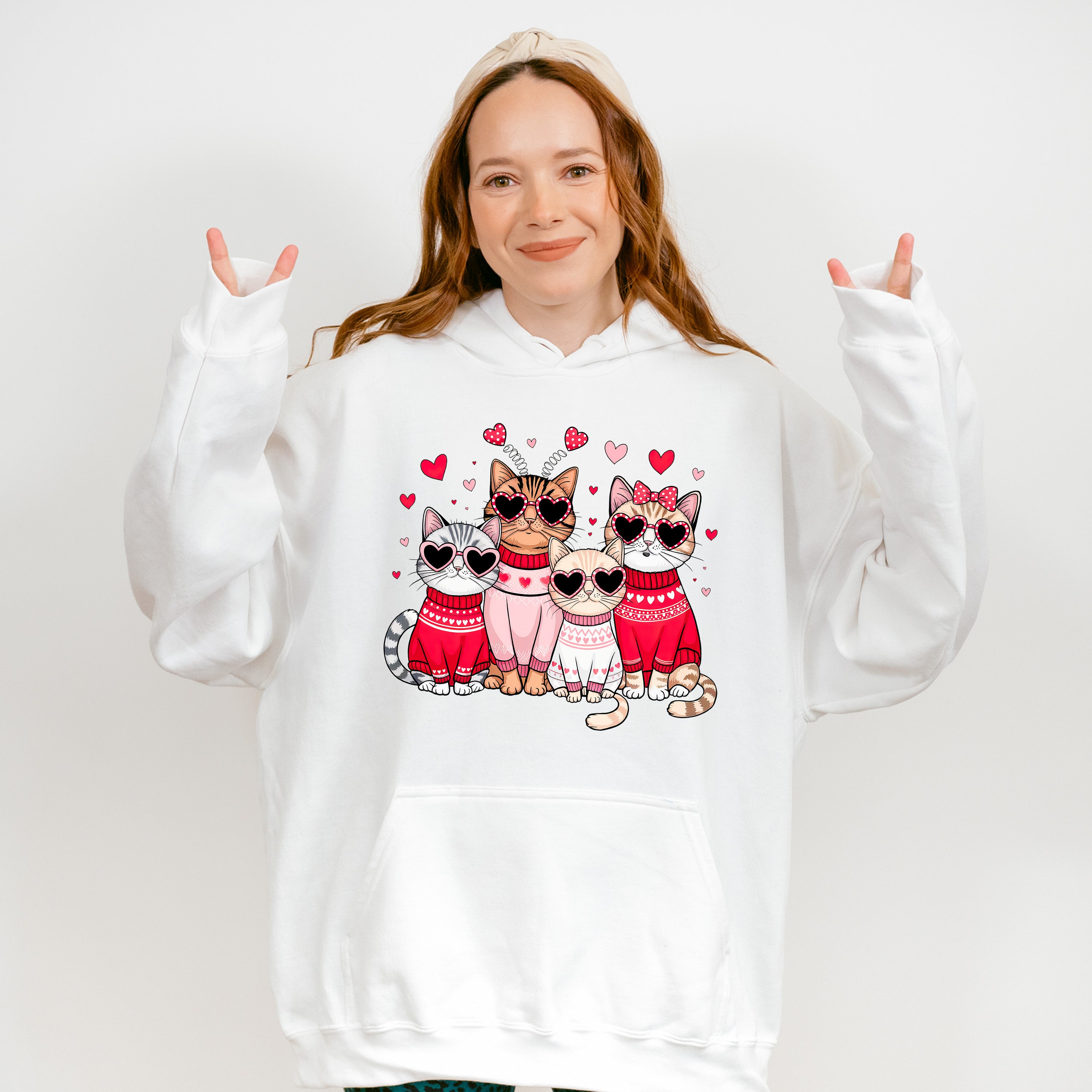 Cute Cats With Hearts - Cat Unisex Crewneck T-Shirt Sweatshirt Hoodie