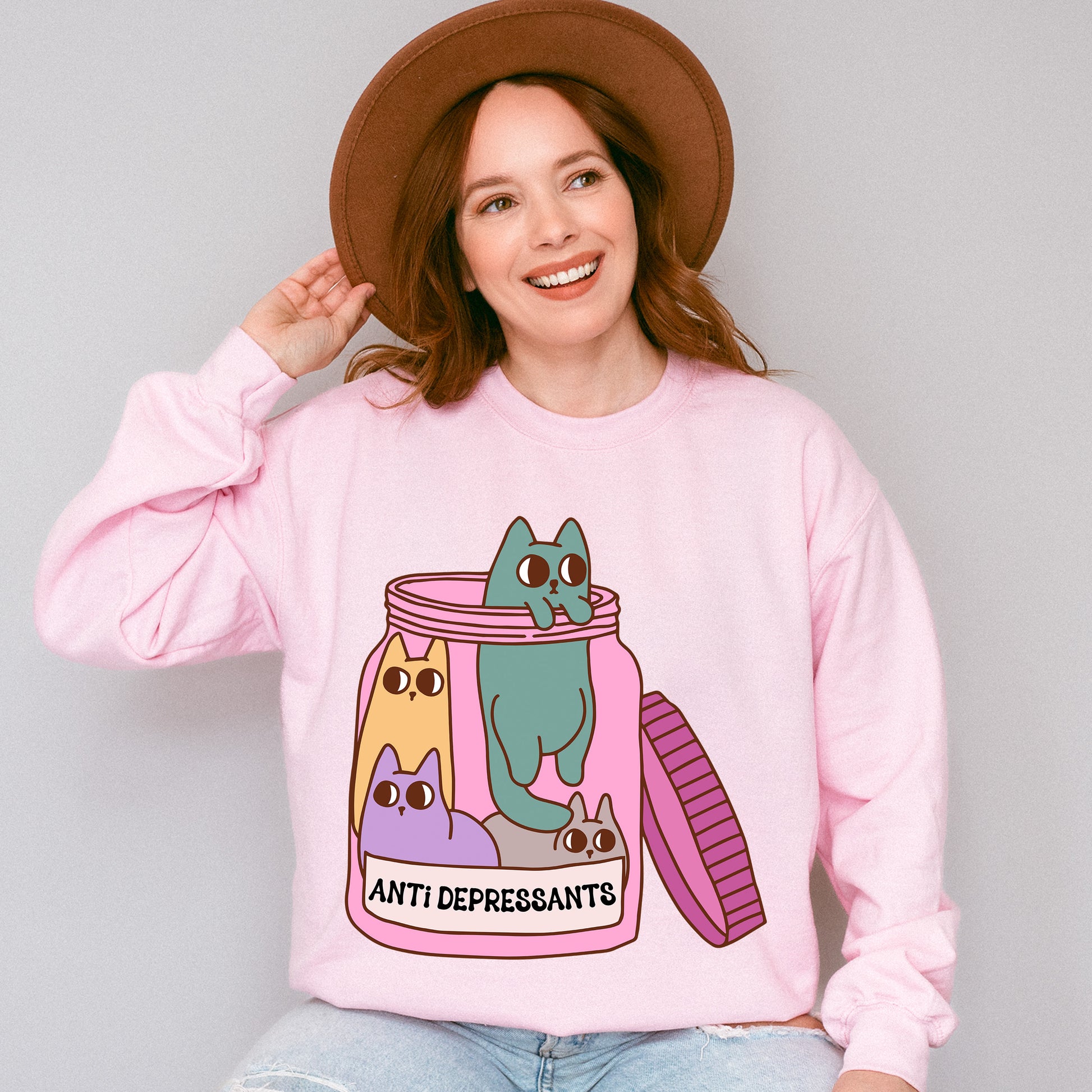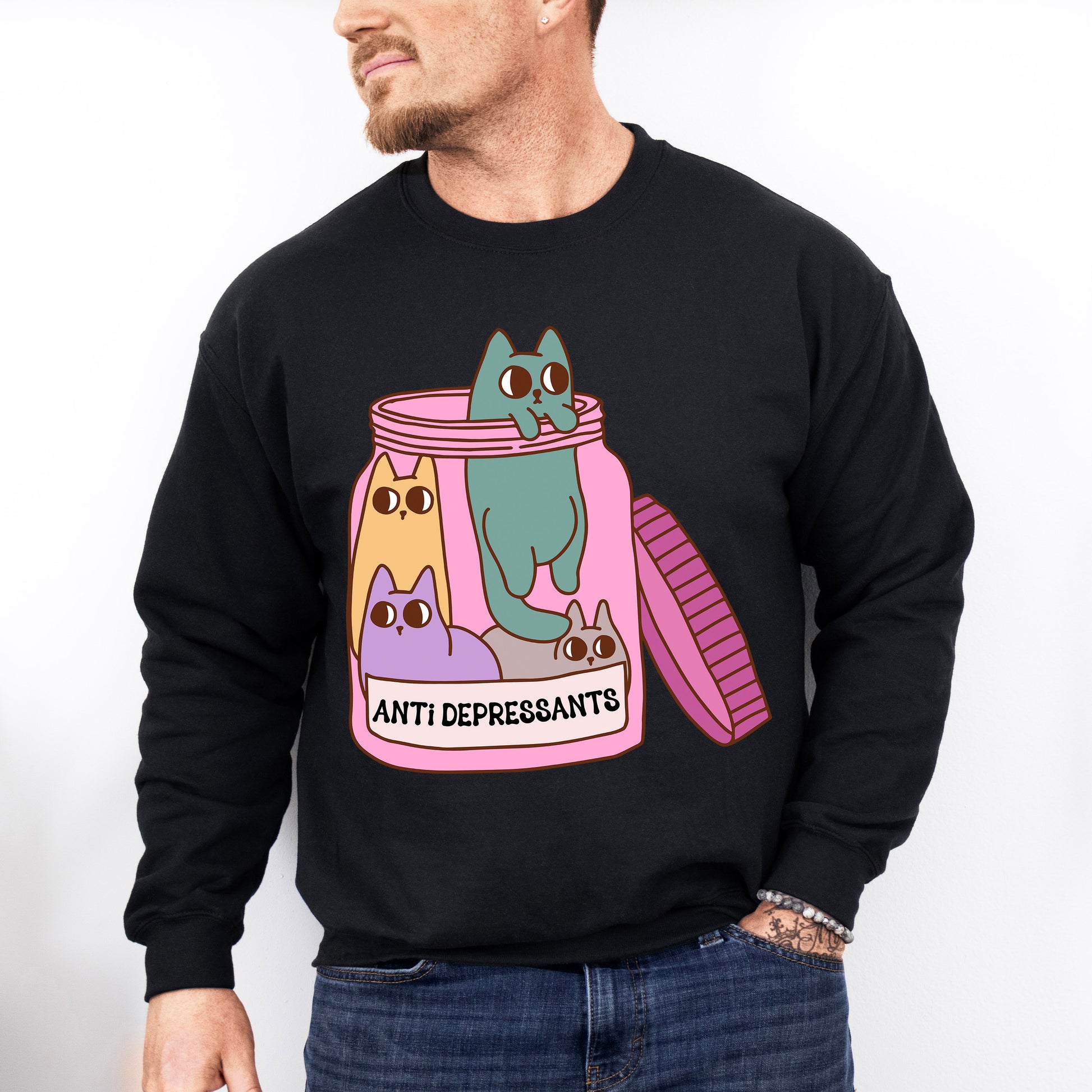 Cats In A Jar Mental Health Theme Unisex Crewneck T-Shirt Sweatshirt Hoodie